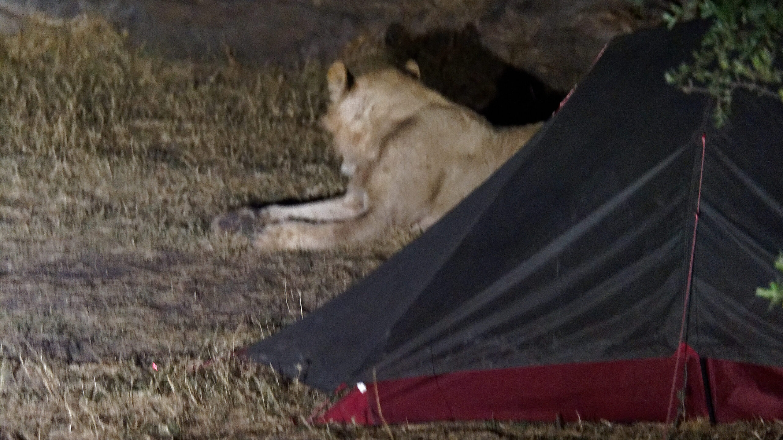 De kans dat dit gebeurt is heel klein, maar wij hadden op gegeven moment 7 leeuwinnen op bezoek in ons kamp (terwijl het kampvuur aan was). Gelukkig zaten we op dat moment in de auto, maar voor hetzelfde geld zit je dan net een marshmellow te roosteren boven het vuur. Van een gids leerden we dat je dan het beste gewoon op je stoel kunt blijven zitten en rustig moet blijven praten, zodat het dier weet dat je er bent en niet opeens van je schrikt. Ga in ieder geval nooit rennen naar je auto, want je bent niet snel genoeg. Tenzij je naast je auto staat, dan kun je voorzichtig de deur opendoen en instappen.